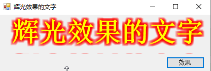 panel1.BackgroundImage = (Bitmap)ImageLightEffect("辉光效果的文字", fnt, Color.Yellow, Color.Red, 10);//调用自定义方法ImageLightEffect