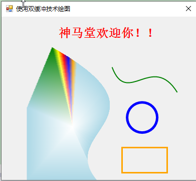 双缓冲即在内存中创建一个与屏幕绘图区域一致的对象,先将图形绘制到内存中的这个对象上,再一次性将这个对象上的图形拷贝到屏幕上,这样能大大加快绘图的速度。主要用来解决窗体大小改变时,出现窗体闪烁的问题。