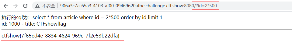 在SQL语句中,我们的 2*500 会进行算术运算,结果是 1000,从而使SQL查询 id=1000的信息,从而获取flag