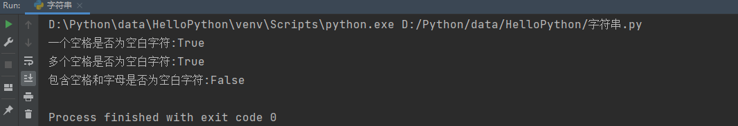 print('一个空格是否为空白字符:%s' % text.isspace())