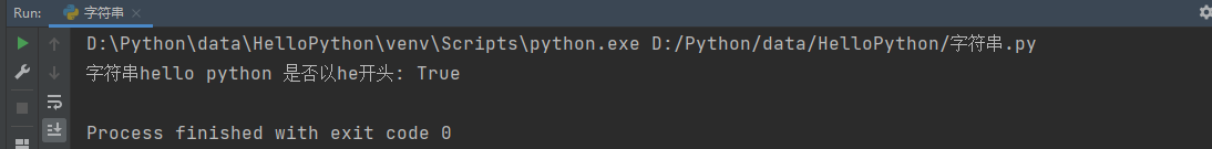 print('字符串hello python 是否以he开头: %s' % text.startswith('he'))