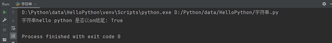 print('字符串hello python 是否以on结尾: %s' % text.endswith('on'))