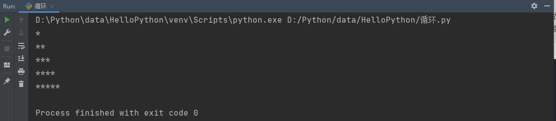 需求:在控制台连续输出五行*, 每一行星星的数量依次递增