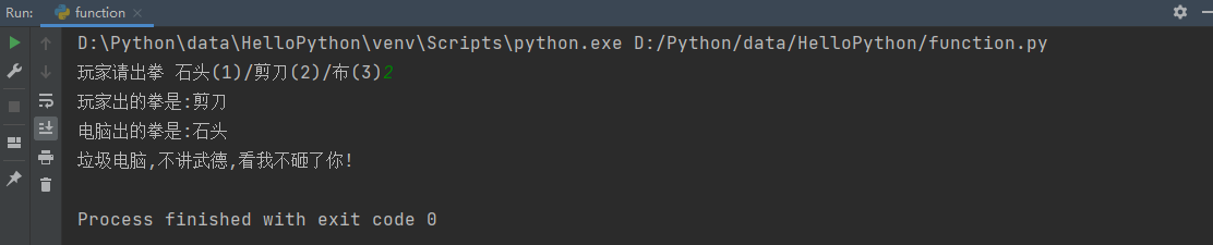 Python小游戏-石头剪刀布(和电脑斗智斗勇)