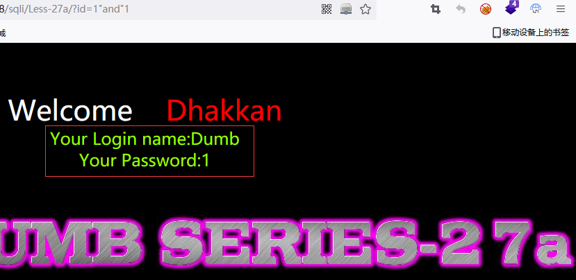 用户输入的参数可以是SQL恒成立或恒不成立,从而控制SQL的执行结果,也就意味着存在SQL注入,注入点为双引号字符型注入,由于报错信息被写死了,这一关可以使用布尔盲注