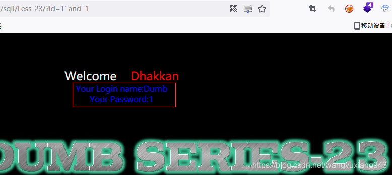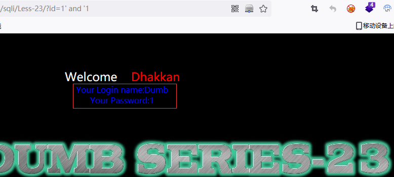 在url中输入payload ?id=1' and '1,登录成功;而输入 ?id=1' and '0,...