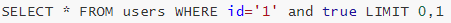 and后面的'1'会转成true,也就是这样,从而使SQL语句恒成立,能够正常查询到数据