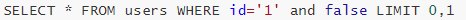 and后面的'0'会转换成false,也就是下面这样,使SQL恒不成立,也就不能正常查询出数据