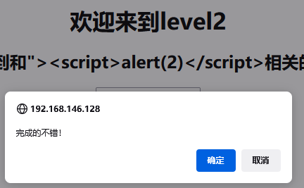 第二关将结果拼接到了value属性中 , 我们插入JS脚本时手动闭合双引号即可
