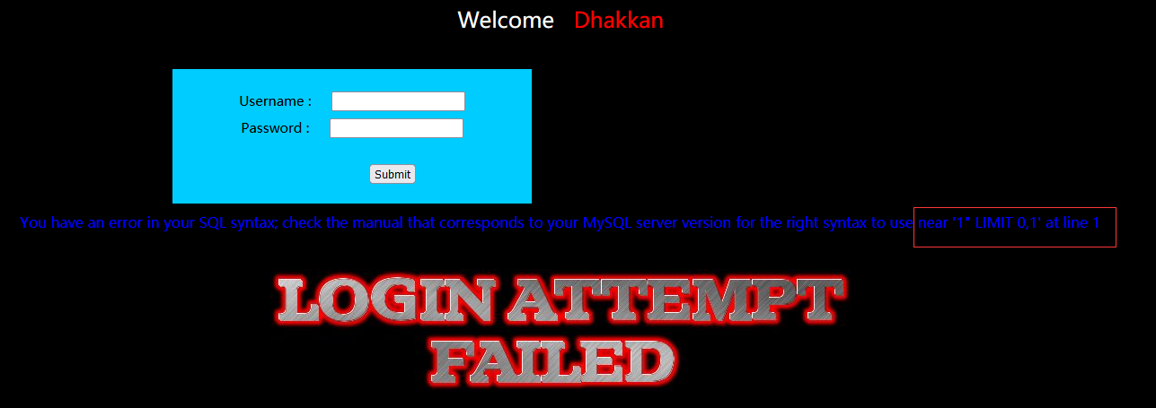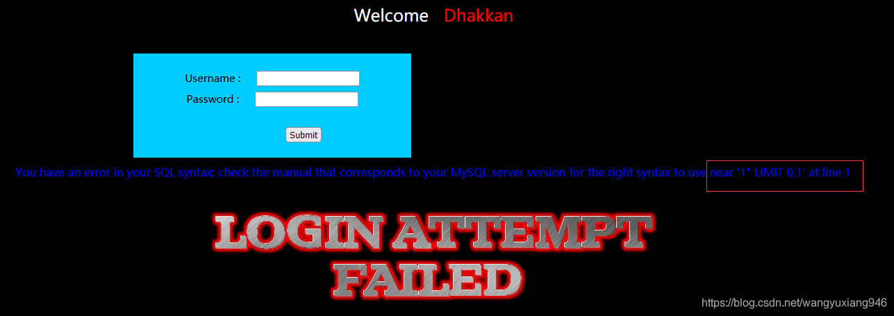 老规矩 , 先给一个单引号' , 用户名输入 a',密码随便输入 , 没啥反应 , 说明单引号对后端的SQL不会产生影响