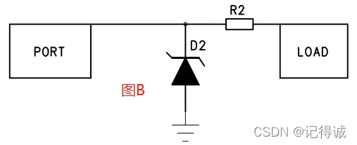 TVS串联电阻一般有两种接法,图A电阻在TVS前,图B电阻在TVS后,两种电路使用场景是不一样的。