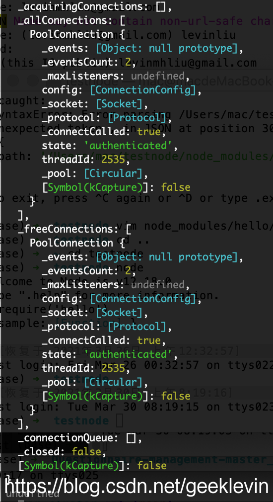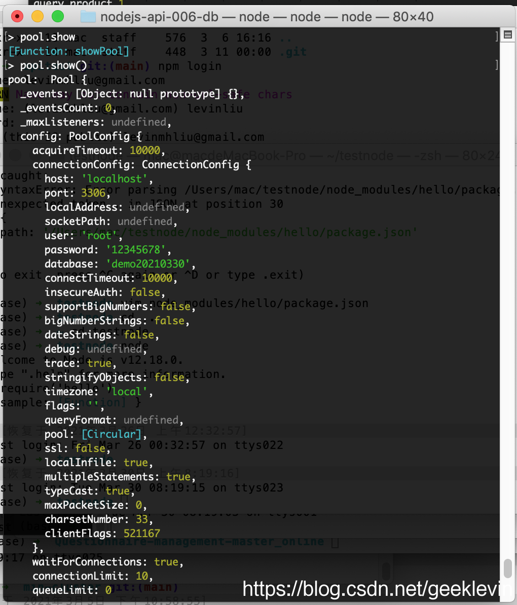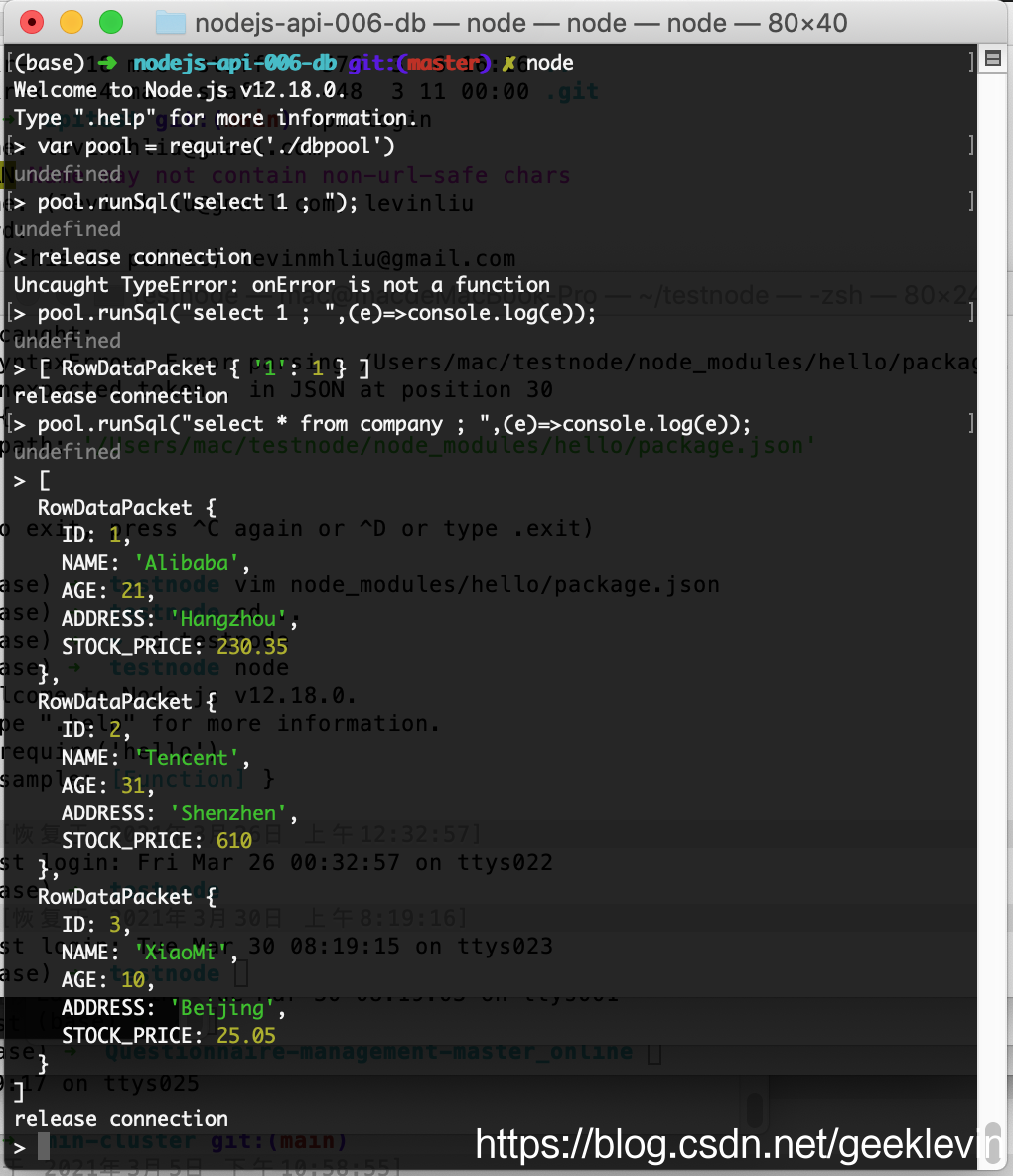 保存代码为dbpool.js, 进入Node终端;然后输入以下代码并查看结果: