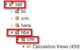 本文例子提到的HANA live query可以从下面的路径找到:打开HANA Studio的系统视图(System perspective): sap->hba->crm->Calculation Views: