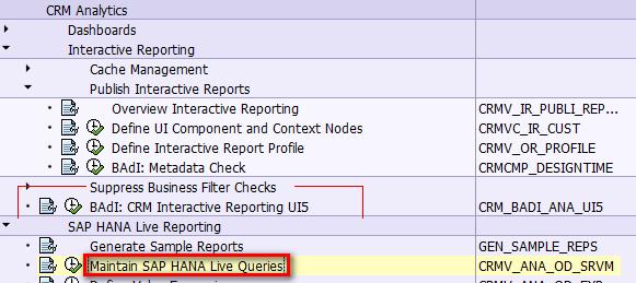 路径:CRM Analytics->SAP HANA Live Reporting: