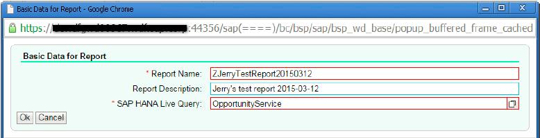 弹出窗口,维护report的名称,描述信息,和底层使用哪个SAP HANA Live Query: