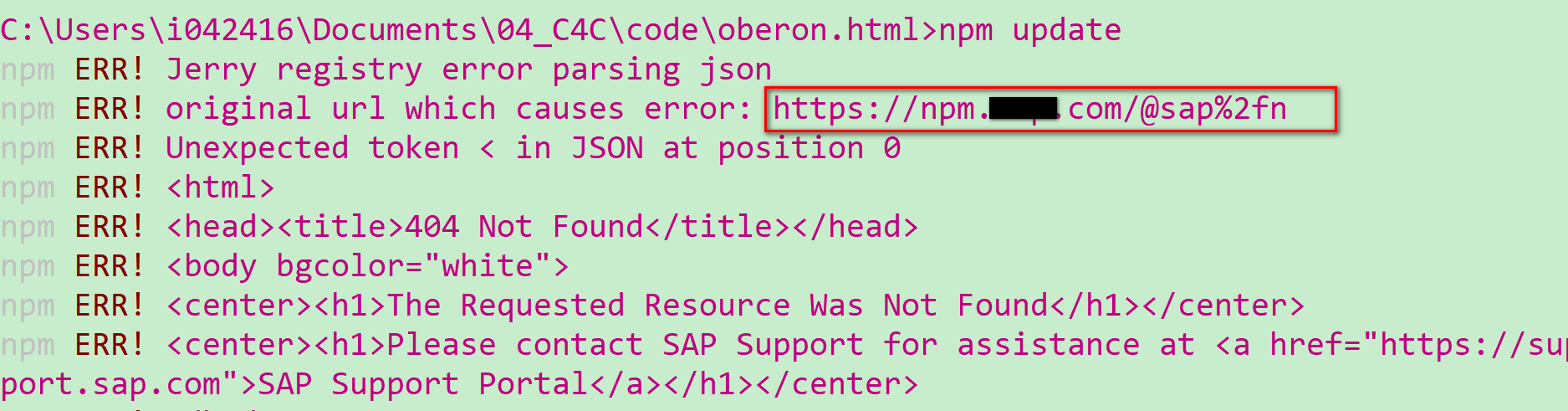 npm ERR! Unexpected token < in JSON at position 0