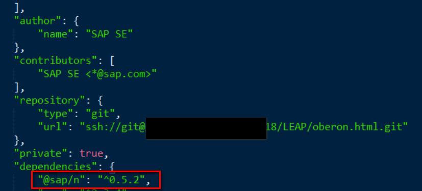 现在就清楚多了,是这个依赖包sap/n的远端有问题,直接联系这个依赖包的负责人去修复。