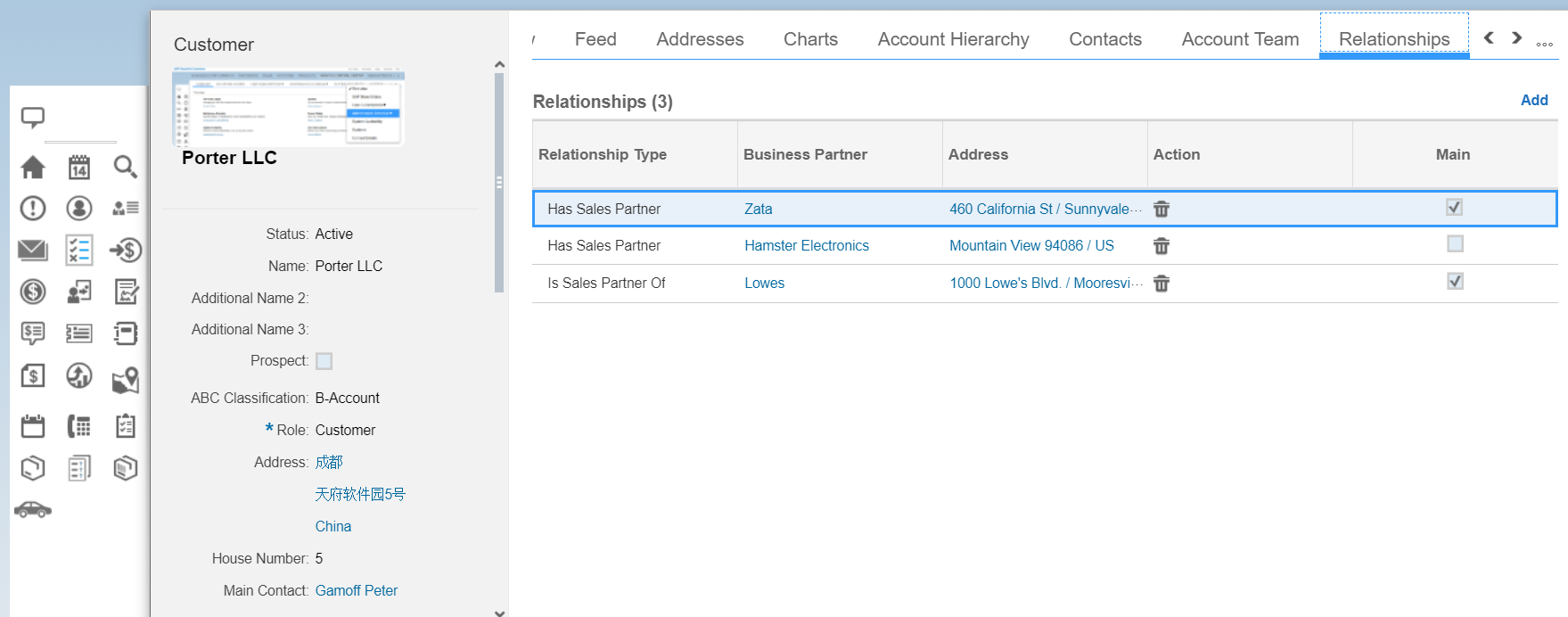 从Porter LLC这个主数据的Relationships里能看到,这个Account没有维护Bill to party,但是维护了Seller party,所以最后创建的Sales Order,Seller被自动填充了出来,而Bill to没有。