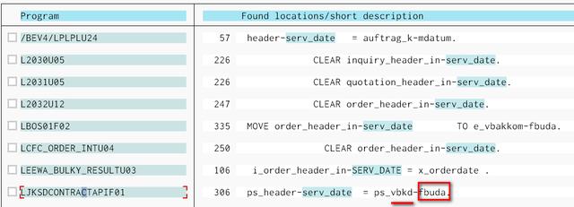 使用SE37的where used list搜索SERV_DATE在哪里赋的值,很快找到是表VBKD