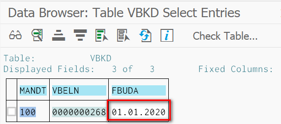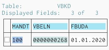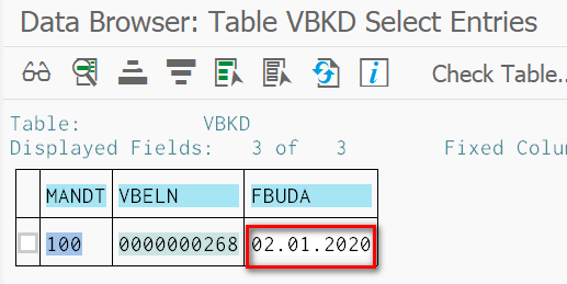 首先从数据库表VBKD里查找到SERV_DATE修改之前的值为2020年1月1日