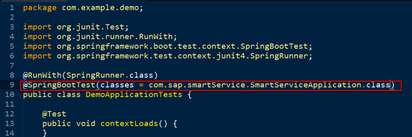 @SpringBootTest(classes = com.sap.smartService.SmartServiceApplication.class)