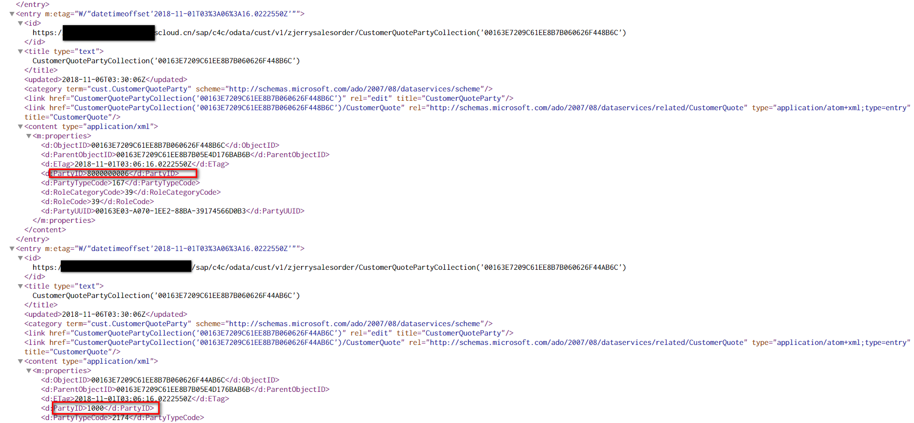 https://<host>.c4c.saphybriscloud.cn/sap/c4c/odata/cust/v1/zjerrysalesorder/CustomerQuoteCollection(‘00163E7209C61EE8B7B05E4D176BAB6B’)/CustomerQuoteParty