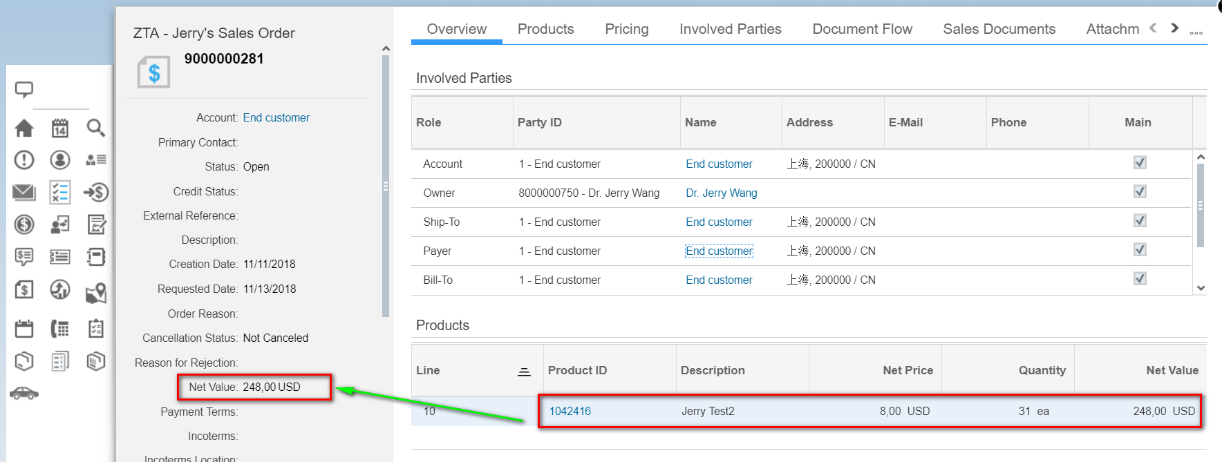 需求很简单,能够创建销售订单,在行项目里添加产品,带出价格来,同时把总价显示在销售订单抬头区域。