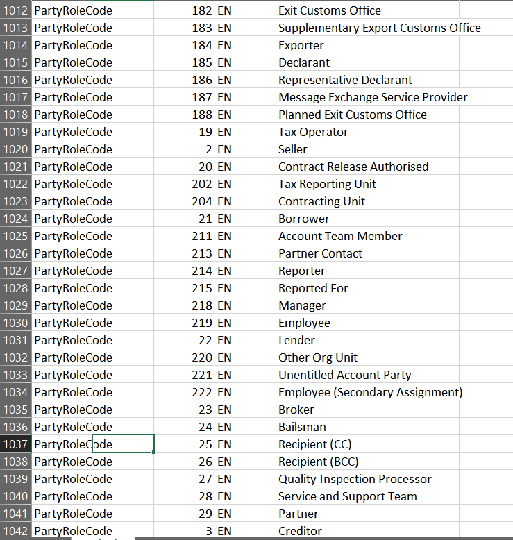 打开之后,所有的RoleCode的含义都能找到,比如PartyRoleCode: