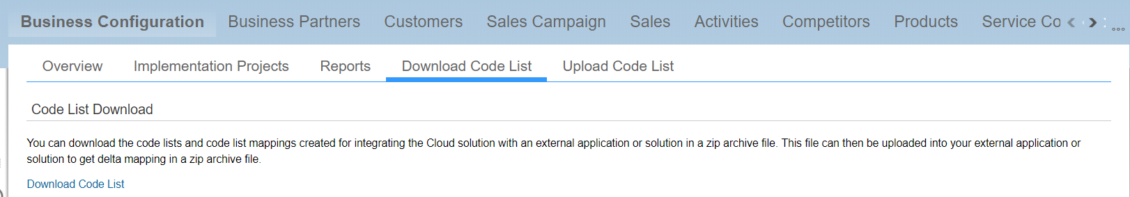 Business Configuration工作中心,视图:Download Code List:点Download Code List超链接: