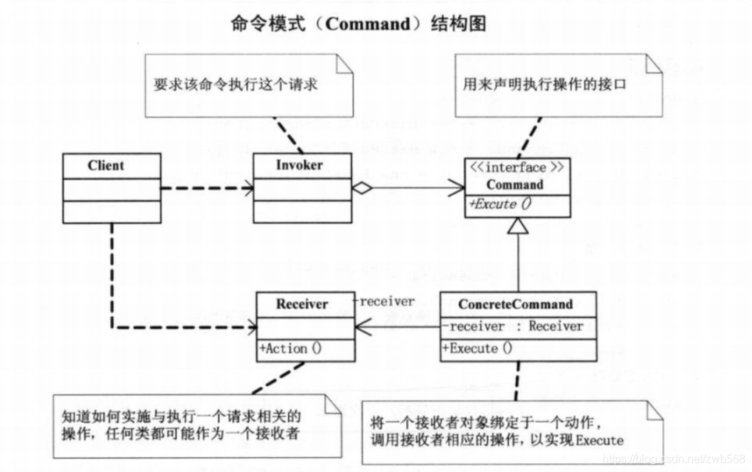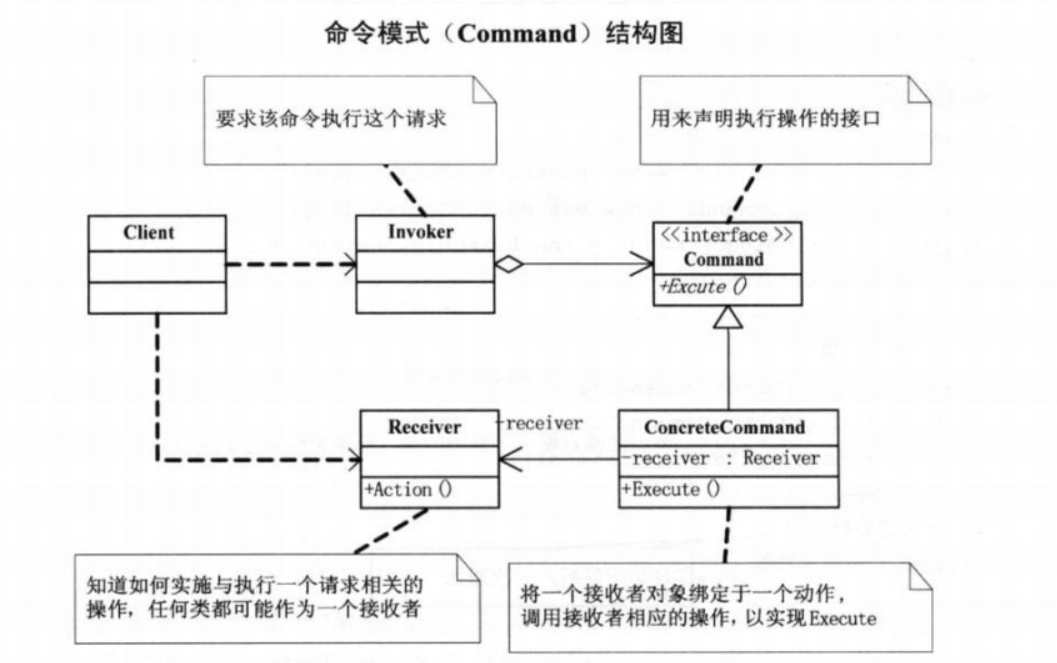命令模式(Command):将一个请求封装为一个对象,从而使你可用不同的请求对客户进行参数化;对请求排队或记录请求日志,以及支持可撤销的操作。