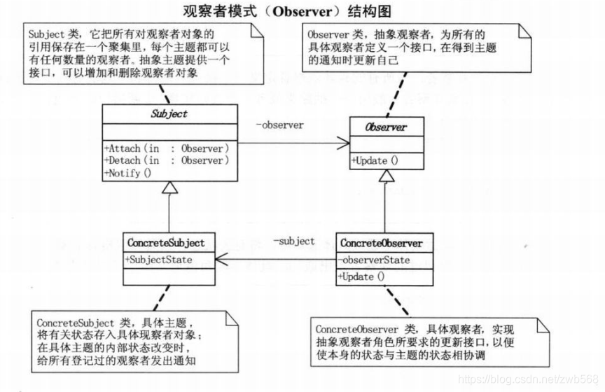 观察者模式所做的工作其实就是在解除耦合。让耦合的双方都依赖于抽象,而不是依赖于具体。从而使得各自的变化都不会影响另一边的变化。