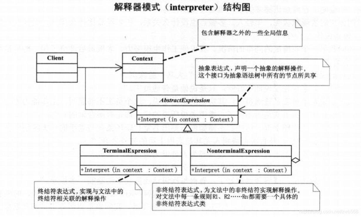 解释器模式(interpreter):给定一个语言,定义他的文法的一种表示,并定义一个解释器,这个解释器使用该表示来解释语言中的句子。