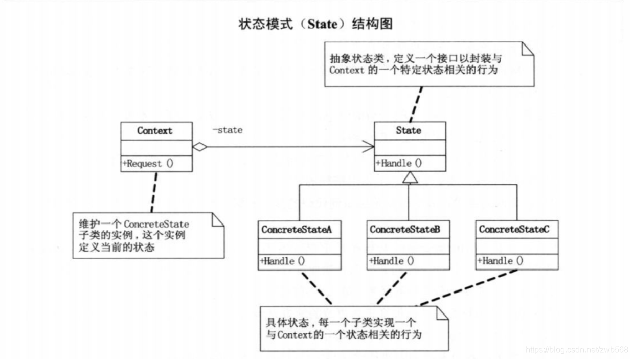 状态模式主要解决的是当控制一个对象状态转换的条件表达式过于复杂时的情况。把状态的判断逻辑转移到表示不同状态的一系列类当中,可以把复杂的判断逻辑简化。