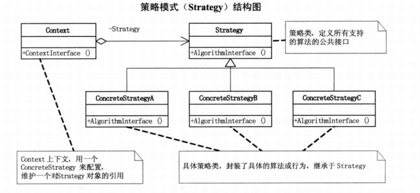 策略模式就是用来封装算法的,但在实践中,我们发现可以用它来封装几乎任何类型的规则,只要在分析过程中听到需要在不同的业务规则,就可以考虑使用策略模式处理这种变化的可能性。