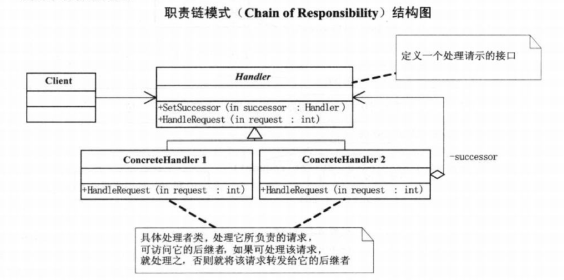 1.这当中最关键的是当客户提交一个请求时,请求时沿链传递直至有一个ConcreHandler对象负责处理它。