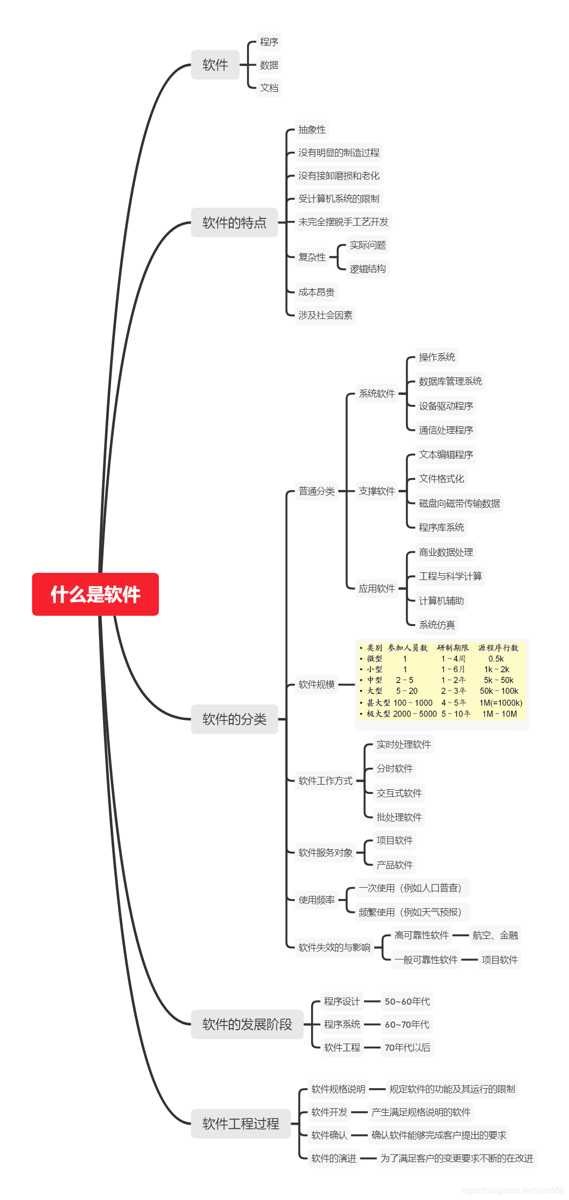 我们作为软件设计和开发人员,应该对软件的定义有所了解,通过对软工视频前两讲的学习,总结了下面一个思维导图帮助大家理解到底什么是软件