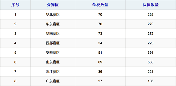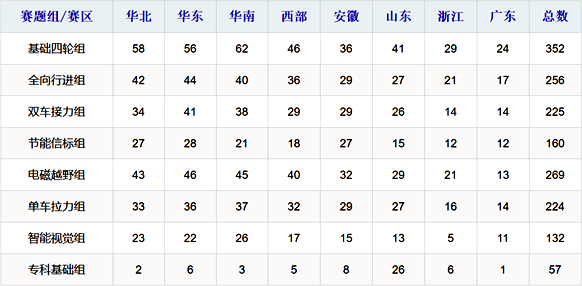 本届智能车竞赛8个竞速组别共有来自450所高校,2317支队伍参加了7 个分(省)赛区的比赛(东北赛区未开赛)。
