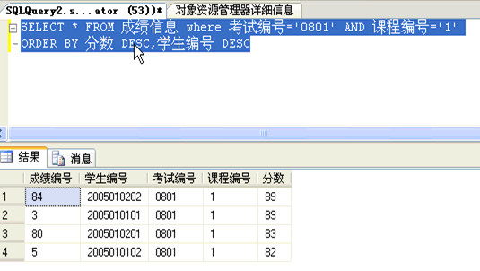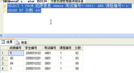 当成绩相同时,对编号再进行限制