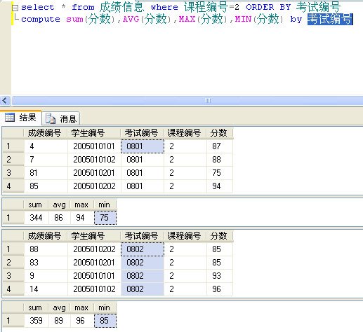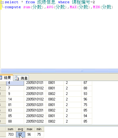 在查询的基础进行求和、平均数、最大值、最小值的合计