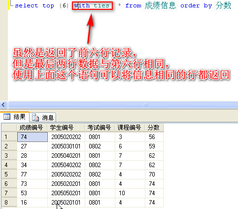 查询成绩信息中,分数的前六名
