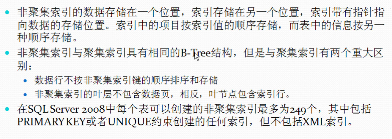 是一个单独的、物理的数据库结构,他是某个表中一列或者若干列的集合和相应的指向表中物理标识这些值的数据页的逻辑指针清单。