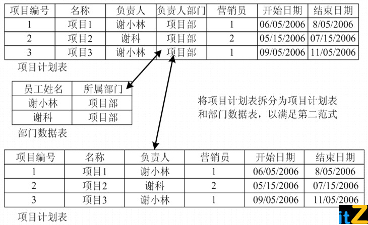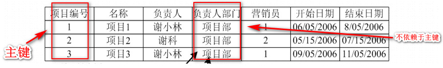 第三范式:如果一个数据表已经满足第二范式,而且该数据表中的任何两个非主键字段的数据值之间不存在函数