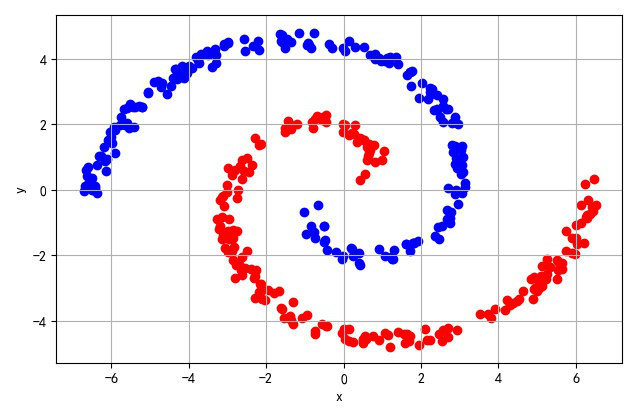 螺旋分类集合是用来测试分类器的典型试金石。在 N-arms Spiral Data 给出了产生螺旋数据集合的PYTHON程序。
