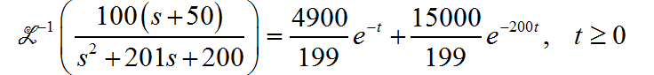 ans=(4900exp(-t))/199+(15000exp(-200*t))/199