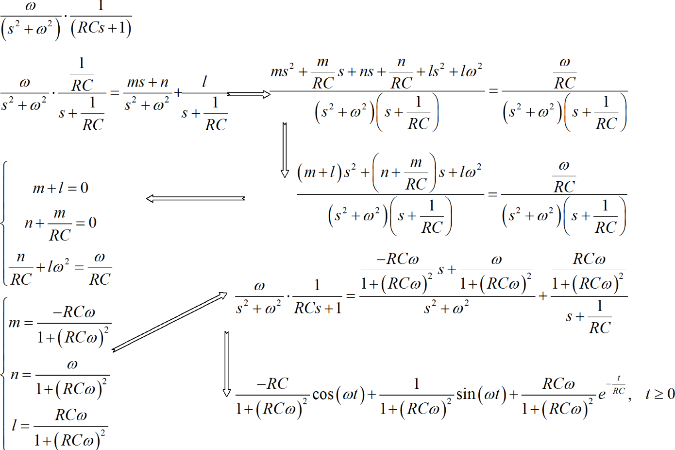 ( 11 ) ω ( s 2 + ω 2 ) ⋅ 1 ( R C s + 1 ) \left( {11} \right)\,\,{\omega \over {\left( {s^2 + \omega ^2 } \right)}} \cdot {1 \over {\left( {RCs + 1} \right)}} (11)(s2+ω2)ω⋅(RCs+1)1