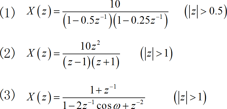 X ( z ) = 10 z ( z − 1 ) ( z − 2 ) ( ∣ z ∣ > 2 ) X\left( z \right) = {{10z} \over {\left( {z - 1} \right)\left( {z - 2} \right)}}\,\,\,\,\,\,\,\,\,\,\,\,\,\,\left( {\left| z \right| > 2} \right)\;\;\;\;\; X(z)=(z−1)(z−2)10z(∣z∣>2)