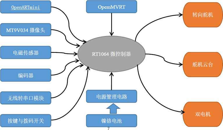 在此次比赛中,本组使用竞赛统一提供的竞赛车 C车模,采用恩智浦半导体公司的 32位微控制器 RT1064DVL6A作为核心的控制单元,自主设计系统的控制方案。其中融合了摄像头的图像采集与处理、电机速度闭环控制以及视觉识别,最终完成了一套能够自主识别行驶路线、进行图像识别的完整系统。