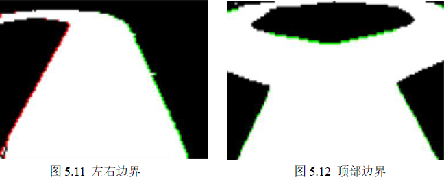 2 在确定好首行的边界后,对左右边界取平均作为中点。后继的每一行图像信息都将以上一行的中点作为当前行的边界遍历起始点,分别向两边遍历图像,从而确定出左右边界,直至判断出当前行为截止行为止。