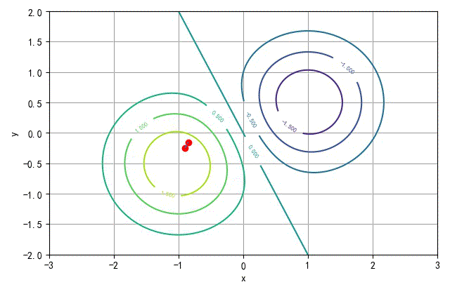 Z ( x , y ) = e − ( x + 1 ) 2 − ( y + 0.5 ) 2 − e − ( x − 1 ) 2 − ( y − 0.5 ) 2 Z\left( {x,y} \right) = e^{ - \left( {x + 1} \right)^2 - \left( {y + 0.5} \right)^2 } - e^{ - \left( {x - 1} \right)^2 - \left( {y - 0.5} \right)^2 } Z(x,y)=e−(x+1)2−(y+0.5)2−e−(x−1)2−(y−0.5)2